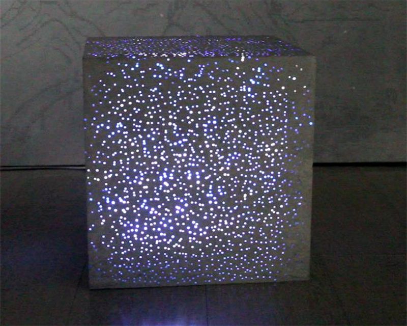 匈牙利建筑师阿隆 · 罗索尼奇Aron Losconzi于2001年发明发明了可透光 的混凝土LiTraCon(Light Transmitting Concrete)他将成千上万根光纤并排 埋入传统混凝土中。这些光纤把光 从混凝土的一端传到另一端,当这 些砌块置于光源之前,或者混凝土 的一侧比较亮而另一侧比较暗时, 砌块就能发光。这种可透光的混凝 土由大量的光学纤维和精致混凝土 组合而成。这种混凝土通常做成预 制砖或墙板的形式,可让光穿过混 凝土。